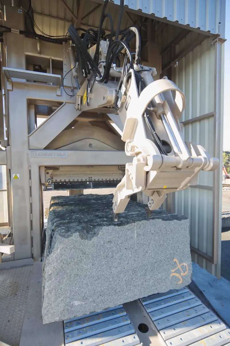 In addition to the regular processing of the quarried blocks for the purpose of splitting, they are used to process unused blocks that were originally quarried for cutting. Highly durable conveyors capable of moving heavy blocks and other additional equipment ensure smooth running of the line. Unique rotary manipulators allow easy rotation, twisting, shifting and sorting of finished products. Easy handling of large stone blocks contributes to greater performance.